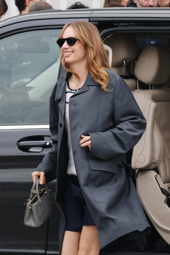 Майя показывает, каким должен быть стильный плащ в 2026 году: чуть оверсайз, прямой, в холодном серо‑синем оттенке, который одинаково хорошо смотрится и с джинсами, и с мини. Под ним — белый вязаный топ и темно‑синие шорты, так что строгий трэнч обрамляет расслабленный, почти студенческий низ, а серая сумочка добавляет к образу нотку «взрослости». Именно такой плащ хочется носить каждый день с марта по май — он и про интеллектуальный минимализм, и про ненавязчивый стиль молодой девушки, которая явно не слишком старалась, но все равно попала в точку.