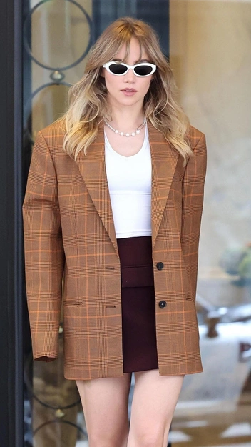 Если вы ищите идеи, в чем отправиться на учебу, работу, свидание или прогулку — у Сьюки Уотерхаус есть стильное решение. Недавно знаменитость появилась в модном аутфите, который всегда будет актуален. Она примерила белоснежный топ облегающего кроя и костюмную мини-юбку в бордовом оттенке и надела поверх пиджак в клетку с акцентными плечами. К образу актриса и певица подобрала кожаные ботинки на платформе, очки в белой оправе и украшения.