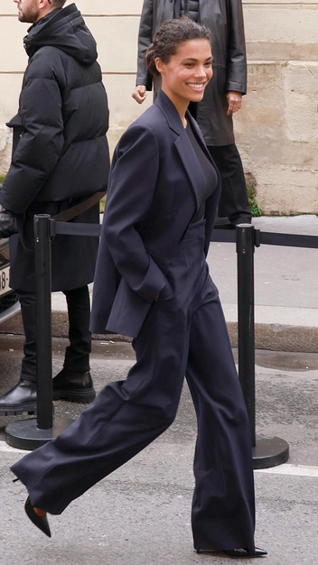 Брючные костюмы прочно вошли в женскую моду: теперь представить без них наш гардероб кажется нам невозможным. Тина Кунаки знает, как выбрать самый модный вариант и подготовиться к новому весенне-летнему сезону. На Неделе моды в Париже знаменитость была замечена в эффектном луке, который состоит из коричневого боди, синих брюк на высокой посадке и свободного пиджака с акцентными плечами. Образ она завершила лишь остроносыми туфлями.