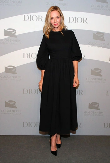 С возрастом многие женщины отказываются от тотал-образов в черном, переживая, что он может не в самом выгодном свете подчеркнуть черты лица. На самом деле, все опасения безосновательны, и Ума Турман это легко доказывает. На днях она вместе с дочерью (и восходящей звездой кино) Майей Хоук посетила концерте в Музее Соломона Гуггенхайма. Для вечера она выбрала черное платье в пол с пышными рукавами от Dior, причем образ выглядит впечатляюще и без ярких акцентов – актриса дополнила наряд лишь лодочками в тон и изящным клатчем.