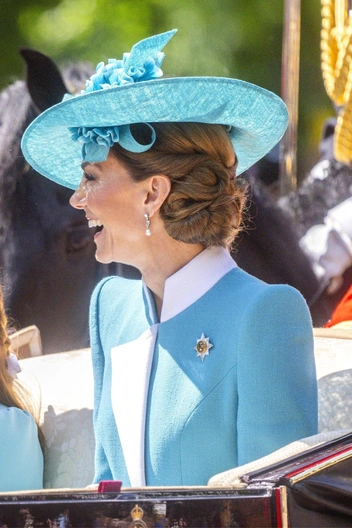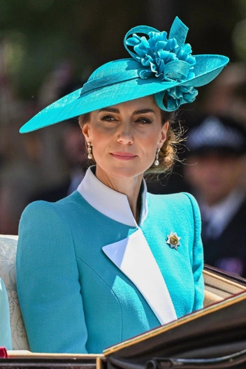 Появление принцессы Кэтрин на публике уже не вызывает такого ажиотажа, как год назад — но это не может не радовать. Значит Уэльская оправилась от онкологии и вернулась к официальным обязанностям. Ее последний выход состоялся на параде в честь дня рождения короля Карла III, куда Кейт подобрала образ в новом для себя аквамариновом цвете.