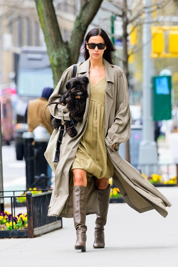 Давно не видели выходов Ирины Шейк в каком-либо цвете, кроме черного — но мы ждали и дождались. На днях модель появилась на публике в по-настоящему весеннем образе, который был выполнен в светло-зеленом оттенке.