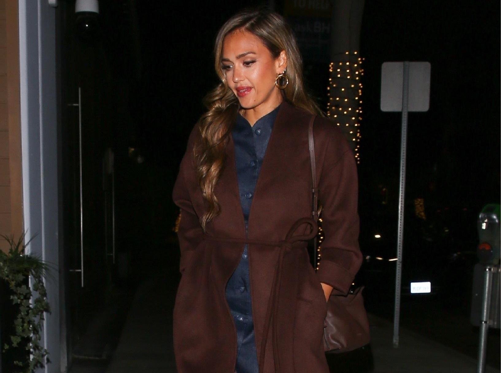 Осенью мы всегда тянемся к темным оттенкам, и один из самых красивых — коричневый. Джессика Альба сделала ставку на цвет горячего шоколада, подобрав пальто и сапоги из замши. Для завершения бохо образа Джессика сочетала все с джинсовой рубашкой — комбо коричневого цвета и темного денима точно берем на заметку.