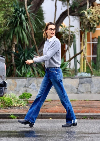 Все, кто привык видеть Алессандру в бра на подиуме Victoria's Secret, могут убедиться — в жизни модель выглядит иначе. Для последнего выхода Алессандра предпочла расслабленный стиль преппи, состоящий из джинсов классического синего цвета, черных казаков и джемпера, надетого на рубашку. Заврешение образа — очки круглой оправы, которые будут в моде в 2025 году.