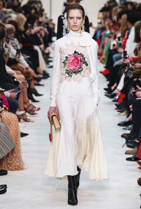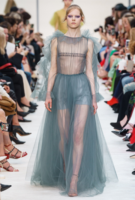 Пьерпаоло Пиччоли и правда прекрасно справляется с ответственностью за итальянский бренд: каждую коллекцию то и дело нахваливают и модные критики, и клиенты дома. Новое шоу строилось вокруг поэзии и высокой культуры. Дизайнер продемонстрировал пальто-кейпы, воздушные полупрозрачные наряды и платья-трапеции, дополненные принтами с цитатами лириков, цветочными аппликациями и вкраплениями сочных и ярких оттенков.
