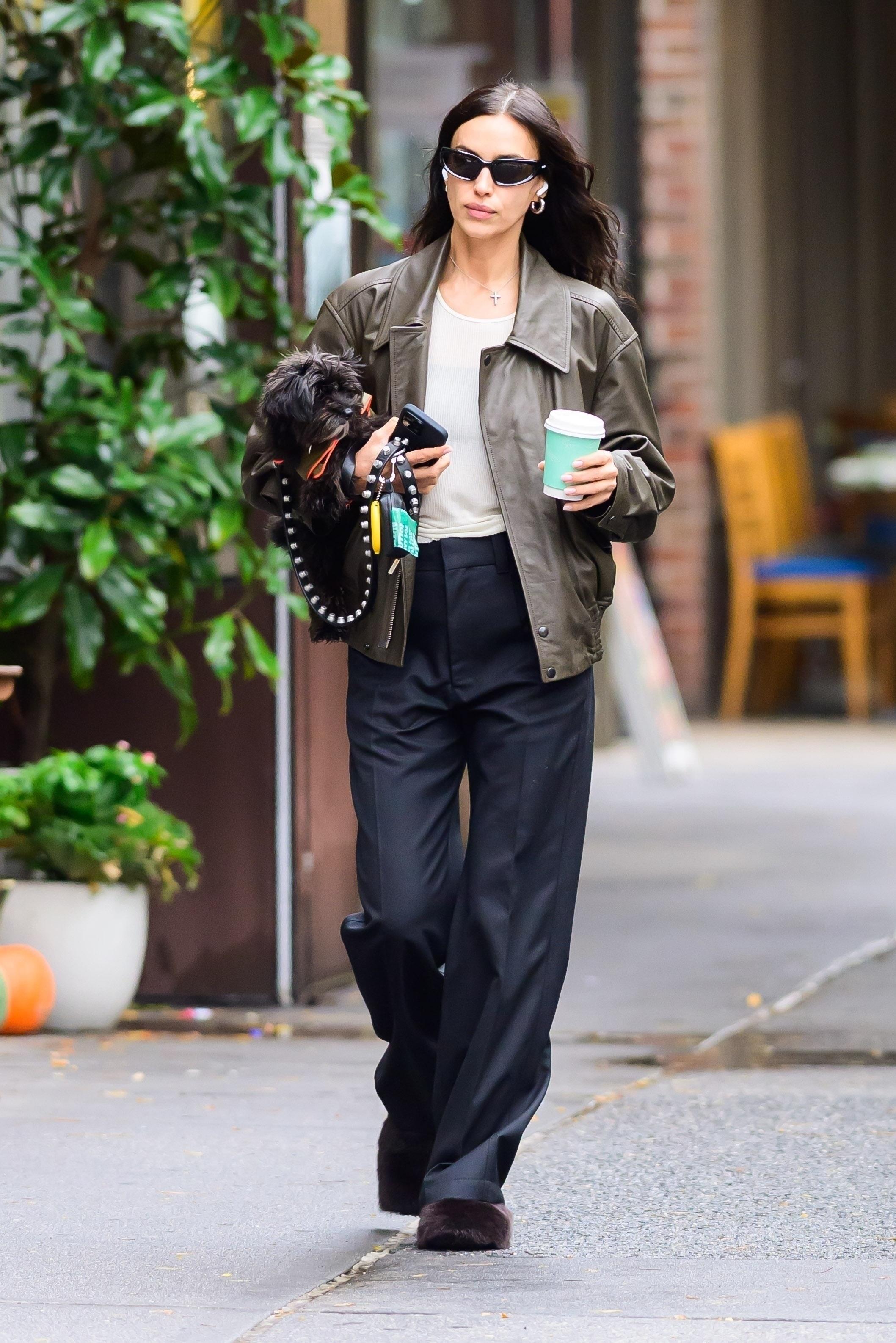 Ирина Шейк точно знает, как создается действительно продуманный базовый гардероб. В ее повседневных образах всегда можно почерпнуть идеи, как стильно обыграть самые простые вещи. На этот раз подсмотрели, как носить базовые брюки и при этом выглядеть непревзойденно. Главный секрет — классический прямой силуэт, который визуально удлиняет ноги, затем — играем на контрастах: сочетаем любимую майку с объемной кожаной курткой, создавая эффектный и современный образ. Не забывайте тщательно подбирать гармоничные оттенки — именно они задают тон всему аутфиту.