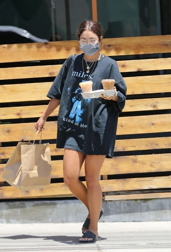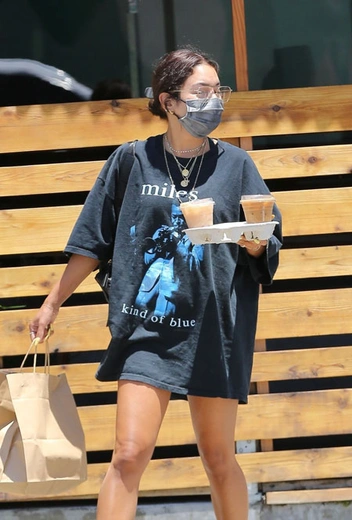 Ванесса Хадженс последовала примеру многих звезд, которые в жару предпочитают максимально свободные и расслабленные топы и футболки. Такие могут заменить платья и при нужной длине не требуют к себе шорты или юбку. Актриса решила добавить к гранжевой футболке сандалии Gucci, поясную сумку Poppy Lissiman и несколько золотых подвесок.