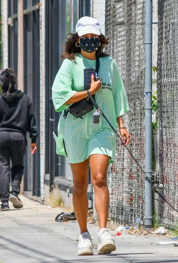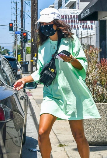 Хотя на подиумах дизайнеры предлагают целую палитру разнообразных оттенков каждый сезон, селебрити нередко любят провозглашать собственные тренды в оттенках. Таким звездным фаворитом неожиданно стал мятный – причем в самом ярком, кислотном появлении. В этом оттенке недавно появилась Эмили Ратажковски, а теперь на платье-футболку такого насыщенного цвета обратила внимание и Ванесса Хадженс. Девушка дополнила комфортный образ массивными сникерсами Naked Wolfe, поясной сумкой Poppy Lissiman и бейсболкой Balenciaga.