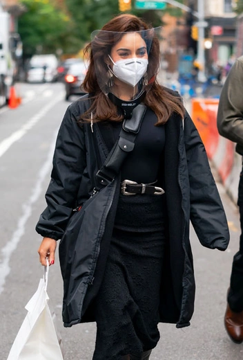 Индустрия кино постепенно приходит к своему доковидному состоянию – отложенные съемки возобновляются, и актеры наконец-то могут приступить к долгожданной работе. 31-летняя Ванесса Хадженс тоже успела соскучиться по съемкам и сейчас активно занята на площадке нового мюзикла «Тик-так, бум!». Лента Лин-Мануэля Миранды рассказжет историю начинающего композитора по имени Джон (Эндрю Гарфилд), который живет в Нью-Йорке. Действия картины, основанной на истории композитора Джонатана Ларсона, разворачиваются в 1990 году. Пока неизвестно, когда фильм выйдет в широкий прокат, однако Ванессу видят на съемках все чаще и чаще. Накануне она представила стильный и практичный образ, который мы можем собрать и для собственного гардероба. Актриса примерила юбку-миди, облегающий лонгслив, объемный удлиненный бомбер и высокие сапоги. Все – в черных тонах.