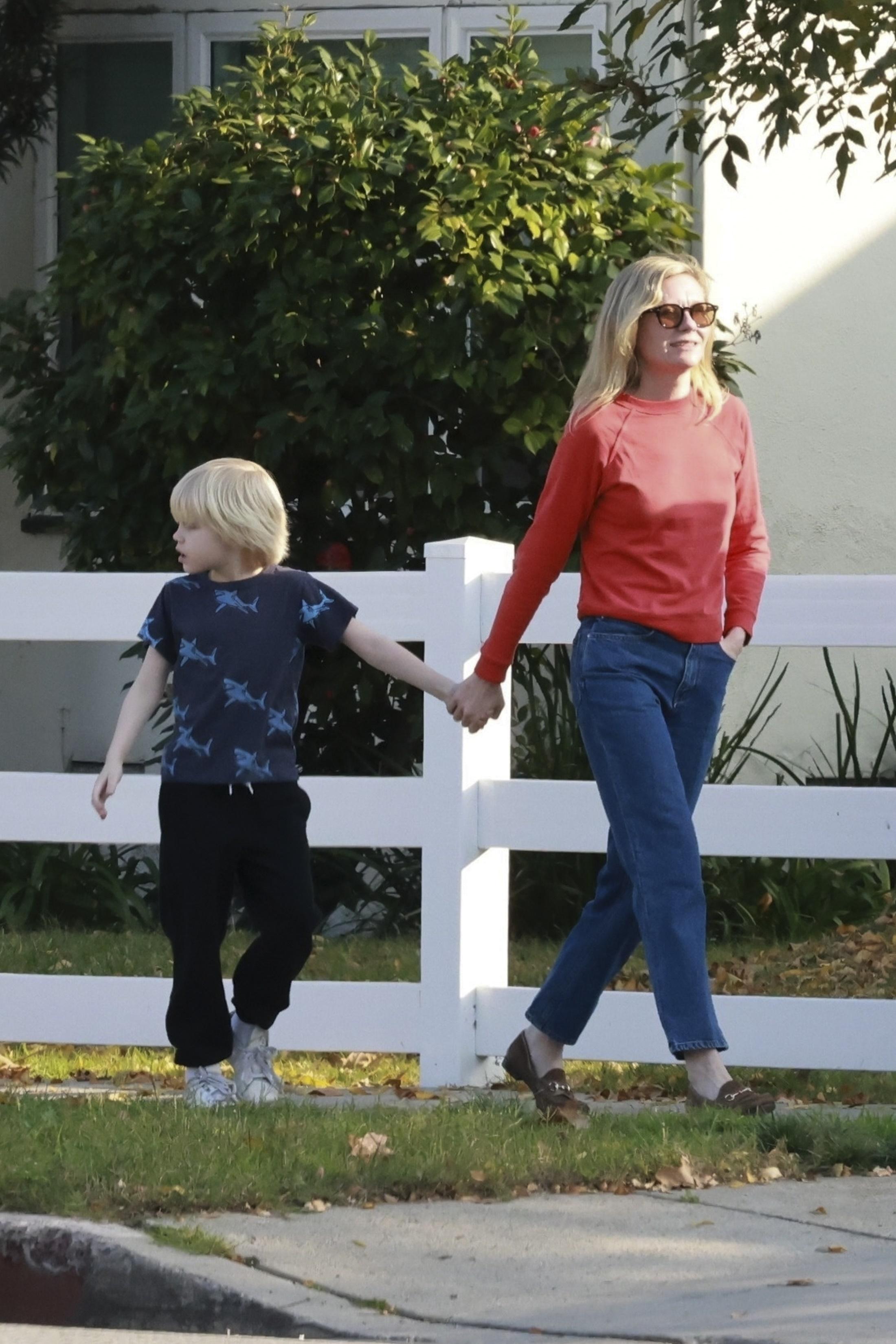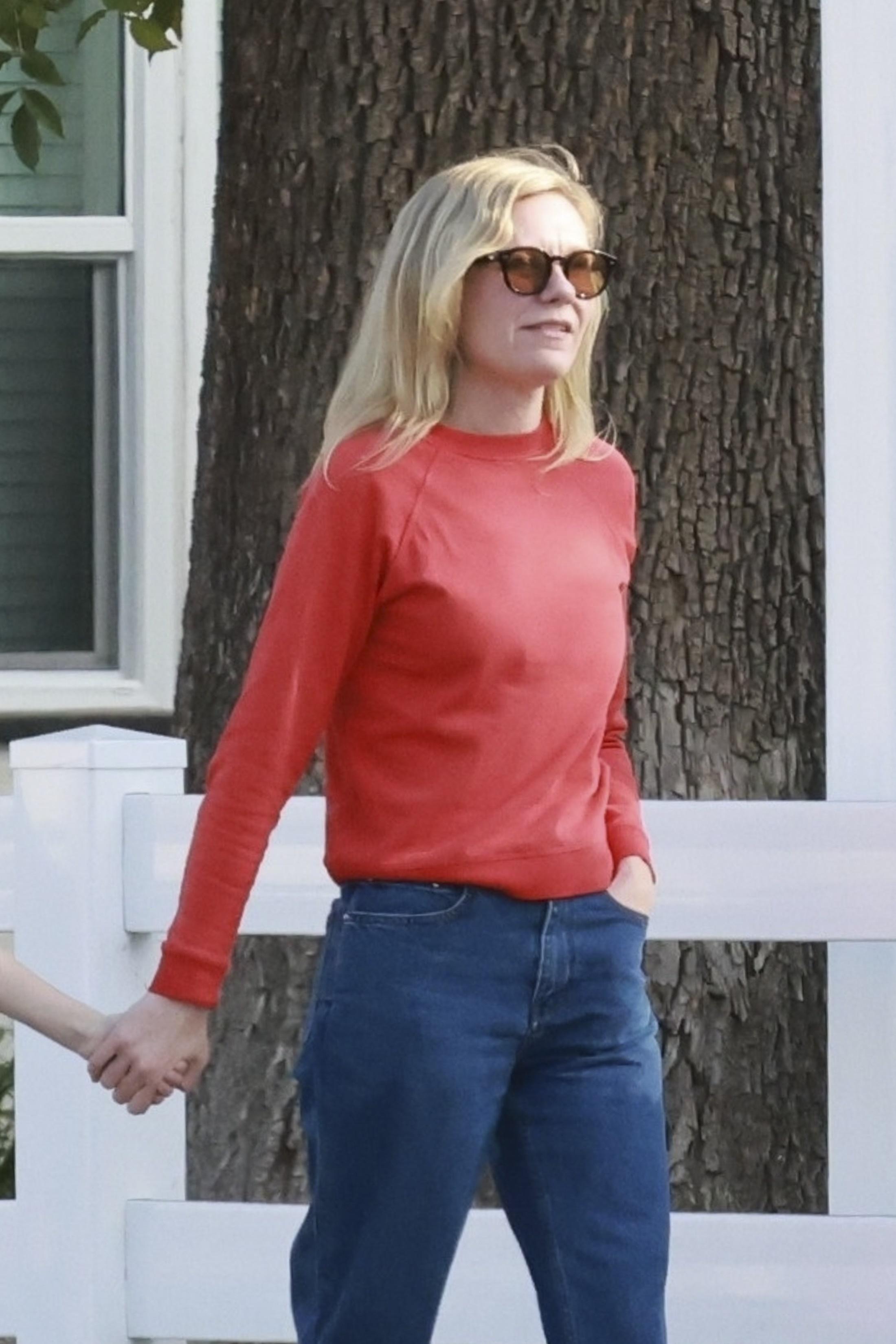 Кирстен снова доказывает, что формула «деним + лонгслив» может выглядеть безупречно, если выбрать правильные вещи: прямые синие джинсы без лишнего декора и плотный красный верх с идеальной посадкой — лучший капсульный набор для семейных выходных. Никаких трендовых трюков — только аккуратные лоферы, распущенные волосы и расслабленная посадка, благодаря чему образ кажется предельно обычным, но при этом выглядит именно так, как мы представляем себе современную звезду Голливуда.