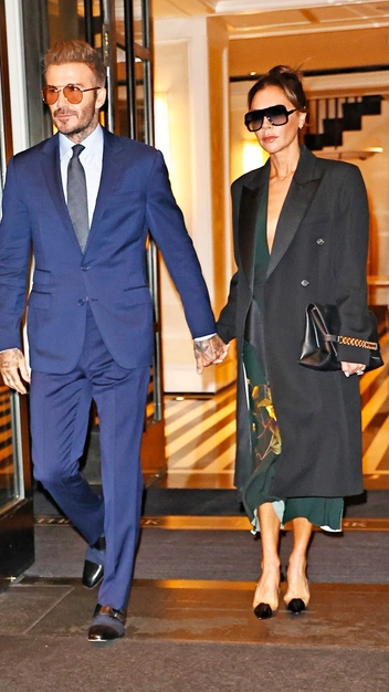 Виктория Бекхэм показала потрясающий аутфит, в котором можно отправиться на свидание или в офис. Звезда выбрала платье длины миди с принтом, поверх которого надела черное двубортное пальто. Завершили наряд бежевые лодочки с черным мысом, кожаная сумка и крупные солнцезащитные очки — визитная карточка Виктории.