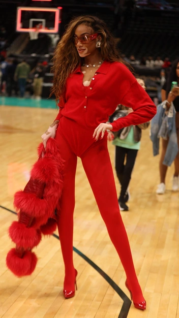 Красный стал бесспорным фаворитом декабря: оттенок лучше других ассоциируется у нас с праздником, поэтому в преддверии Нового года акцентные вещи надевают все модницы друг за другом. Винни Харлоу решила примерить алый тотал-лук, надев белье, колготки, кардиган и трикотажные шорты в едином тоне. На плечи она также накинула трендовую кроп-шубу с длинным мехом и завершила провокационный образ лакированными лодочками, очками и крупными украшениями.