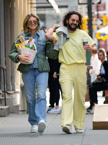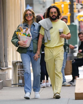 А зодно и показали стильные луки. Том Каулитц предпочел сливочно-желтый оттенок butter yellow и простые белые кеды, а Хайди Клум поставила на джинсу. Так, модель надела прямые джинсы и ветровку со вставками цвета хаки, а также очки авиаторы — трендовую модель на лето 2025 года.
