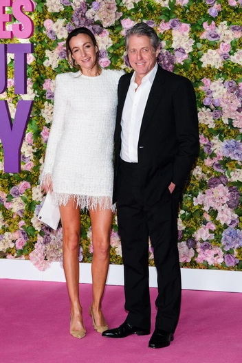 Долгожданная премьера фильма «Бриджит Джонс» прошла успешно, ведь в Лондоне собрались одни из самых популярных британских актеров. Хью Грант, как исполнитель роли в серии фильмов, вышел с женой Анной Эберштейн и составил образ с классическим черным брючным костюмом. Его супруга сделала ставку на белое платье из твида, которое дополнила лодочками бежевого цвета.