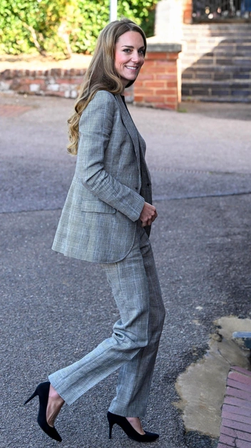 Если ломаете голову над осенним деловым гардеробом, то присмотритесь к образам принцессы Уэльской. 11 сентября королевская особа посетила ткацкую фабрику Sudbury Silk Mills в Садбери в деловом костюме от Bella Froud. Принцесса сочетала классический фасон с клеткой — принтом, который возвращается в трендбуки каждую осень. Образ дополнило трикотажное поло и лодочки на высоком каблуке от Stuart Weitzman.