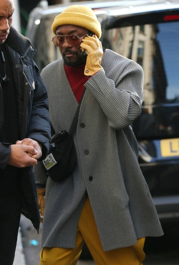 Немного желтого, серого, красного и черного впридачу дают вместе сочный цветовой микс. Классические перчатки и брюки стильно контрастируют с объемным кардиганом и кроссовками. Оригинальное решение для удобного и уютного casual в обрамлении поп-культуры.