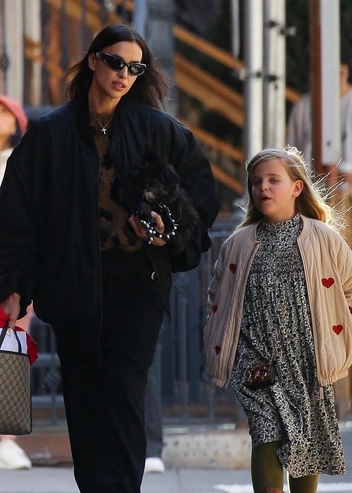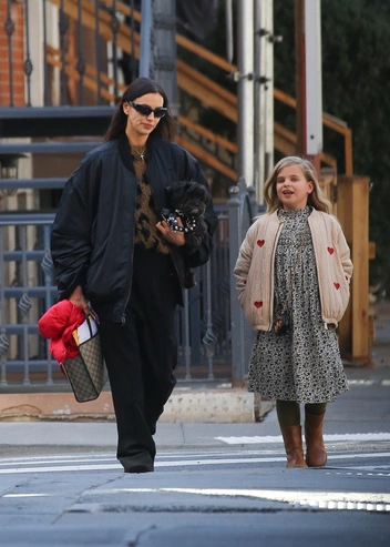 Недолго Брэдли Купер радовал нас своими прогулками с дочерью — теперь Ирина Шейк вернулась с Недель моды и снова забирает ребенка из школы. В очередной раз в темном образе из черного удлиненного бомбера, свободных брюк и свитера с леопардовым принтом. Лея оделась более жизнерадостно: платье в стиле бохо с цветочным принтом дополнил бежевый бомбер и сапоги коричневого оттенка.