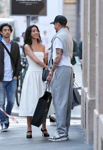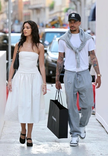 Кажется, понимаем, почему, ведь Синди идет с объемным пакетом Chanel, а во время прогулки пара зашла в бутик Cartier. На Кимберли было платье модного фасона с заниженной талией и юбкой баллон молочного оттенка, а также лодочки Miu Miu из сетчатой ткани. Образ завершила сумка Prada Cleo в черном цвете.