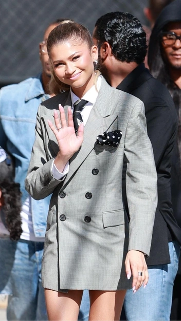 Каждое публичное появление актрисы становится предметом обсуждения — невозможно оторваться от красоты и стиля ее образов. На этот раз знаменитость была замечена в платье-пиджаке, которое возглавляло тренды несколько лет назад и теперь снова стало популярным. Она выбрала серый наряд и надела под него рубашку вместе с галстуком. Завершили лук в стиле «офисной сирены» туфли на высоком каблуке и лаконичные украшения.