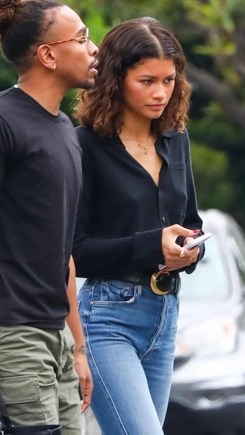 Зендею нечасто встретишь на улицах мегаполисов, а если и встретишь, то, скорее, в спортивной одежде. Для нее вещи — совсем не показатель достоинства, однако недавно она появилась в стильном образе, который вы легко сможете повторить. Знаменитость надела на голое тело черную рубашку и заправила ее в эффектные прямые джинсы на высокой талии, что идеально подчеркивают фигуру. Завершила выход она черными кожаными аксессуарами: широким ремнем с золотой пряжкой и лоферами.