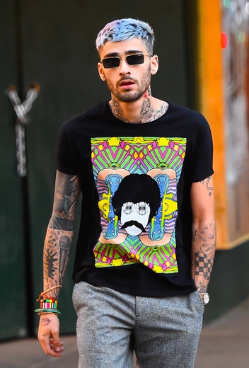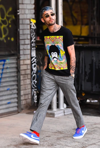 Зейн Малик и Джиджи Хадид, как известно, теперь снова вместе — правда, все чаще и чаще влюбленную пару можно встретить поодиночке. 28 июня, например, папарацци ловили Зейна в Нью-Йорке, где певец неспешно прогуливался в симпатичном наряде из футболки и широких брюк. Главные украшения экс-солиста One Direction — это, конечно же, голубой оттенок волос и бесчисленные татуировки.