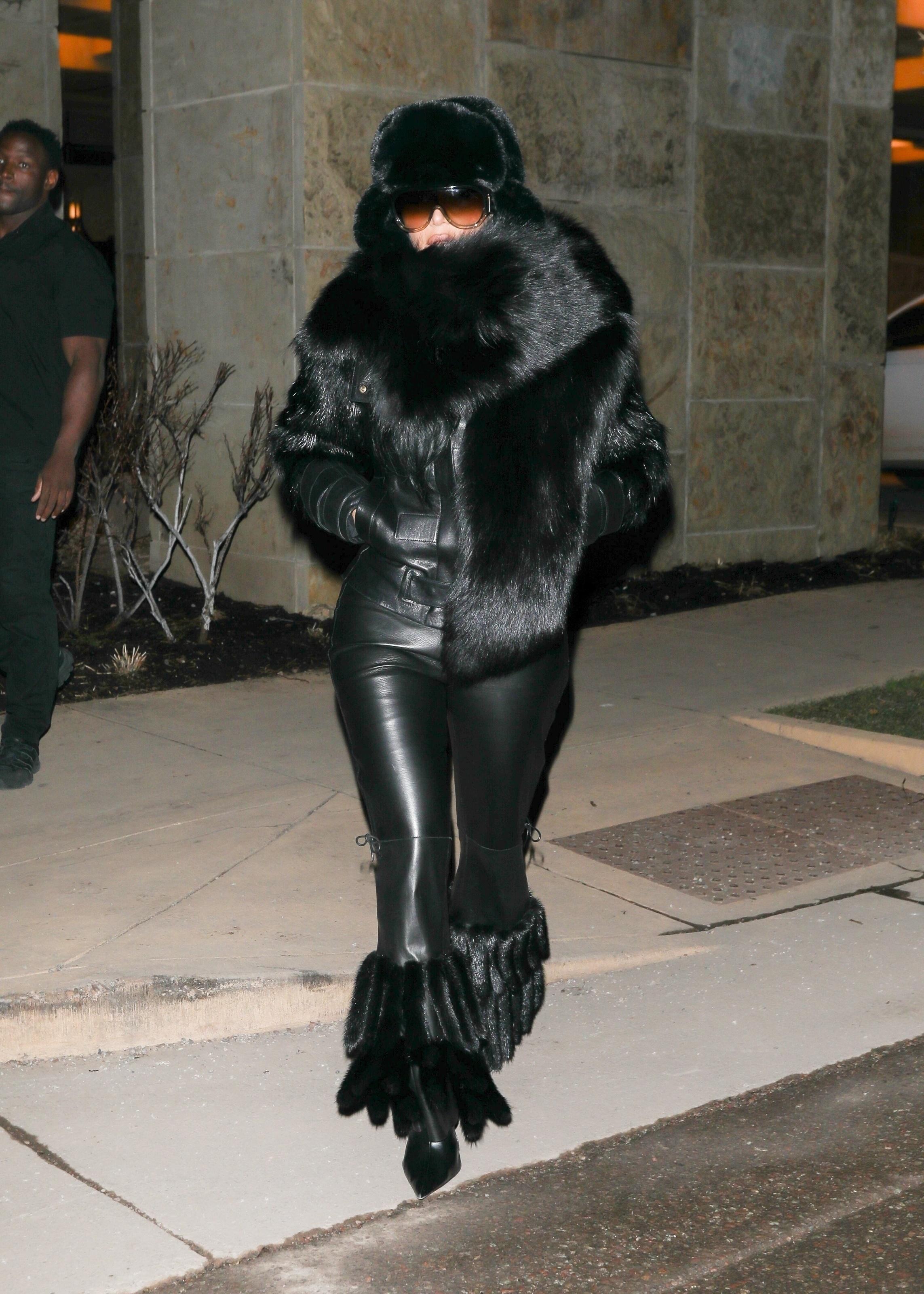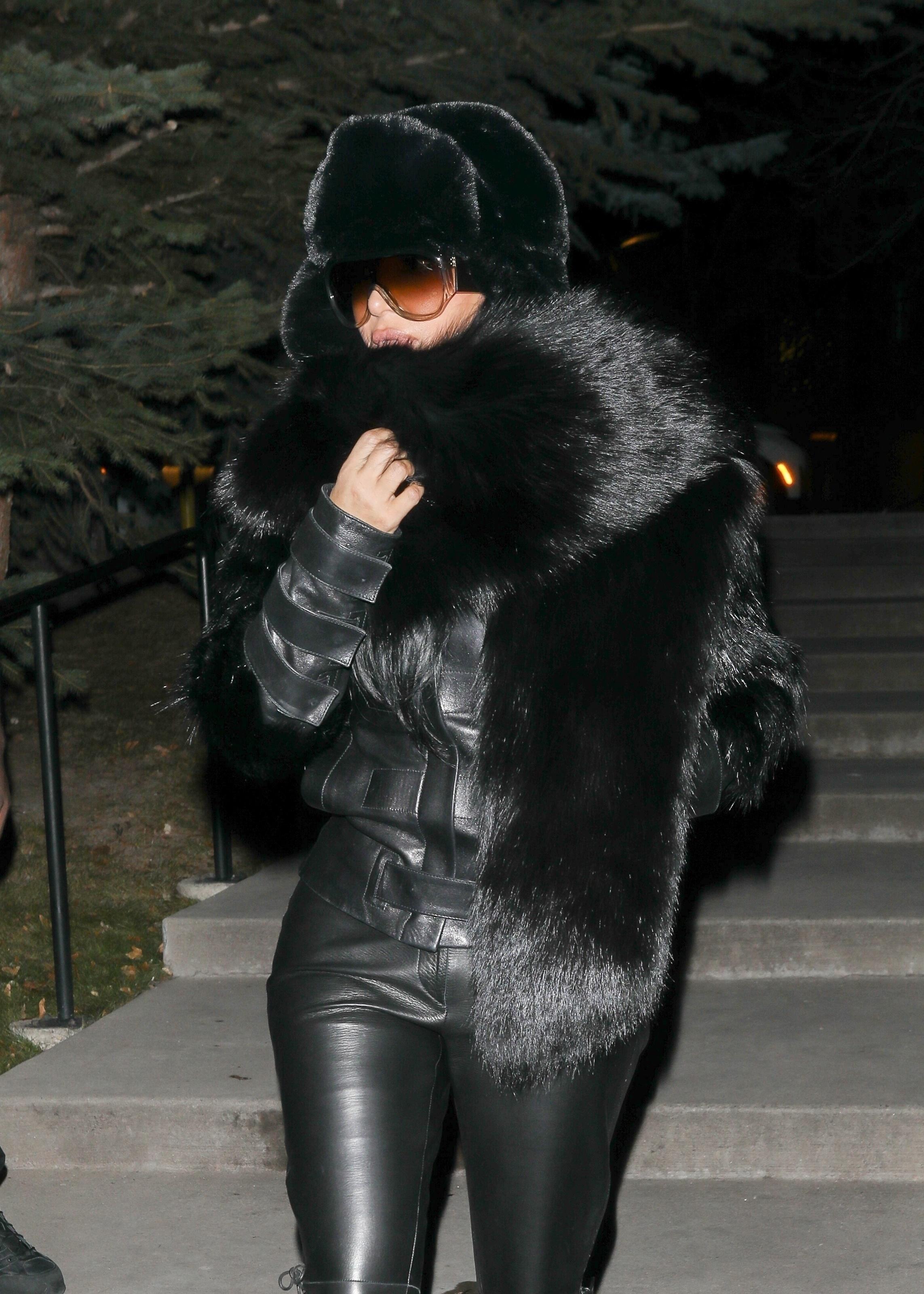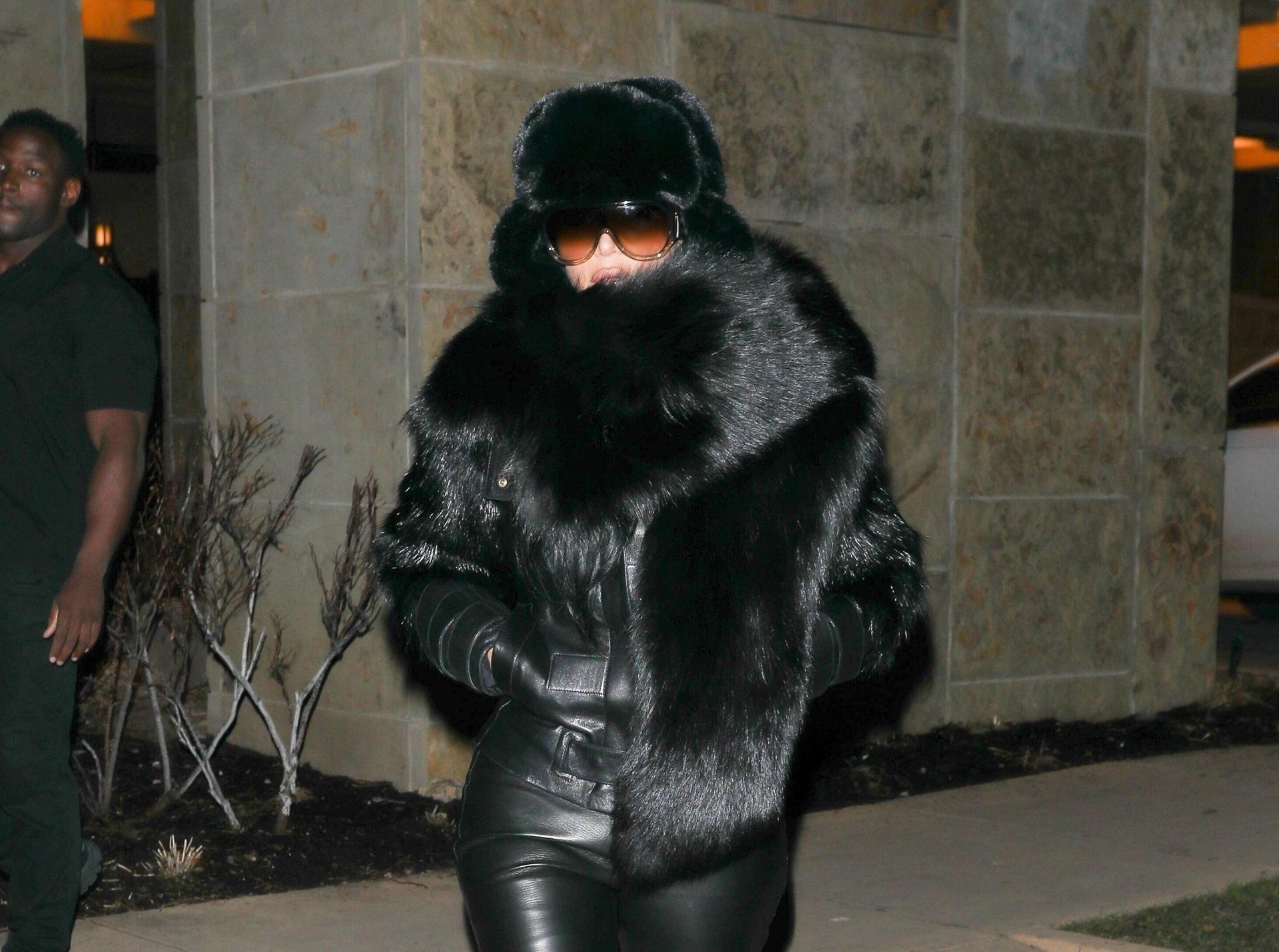 Кажется, Ким Кардашьян вдохновилась образами своего бывшего мужа — Канье Уэста: абсолютный total black из кожи и меха превратил ее в героиню собственных «йе‑хроник» — объемная ушанка и массивный шарф закрывают пол‑лица, а поверх облегающих кожаных брюк с меховой бахромой она накинула короткую куртку с акцентными плечами — эдакий гибрид mob‑wife и мрачного Yeezy‑фаната. Интересно, сама Ким закладывала в этот лук такие отсылки или просто устала от навязчивых папарацци?