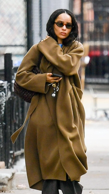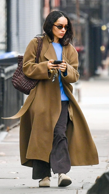Если вам нравятся расслабленные и порой небрежные образы, тогда предлагаем присмотреться к редким, но всегда стильным выходам Зои Кравиц. Например, недавно она была замечена на улицах Нью-Йорка в свободном голубом свитшоте и темно-коричневых вельветовых брюках. В качестве верхней одежды актриса выбрала объемное пальто в бежевом оттенке и завершила лук аксессуарами: замшевыми кедами, очками и плетеной сумкой из кожи.