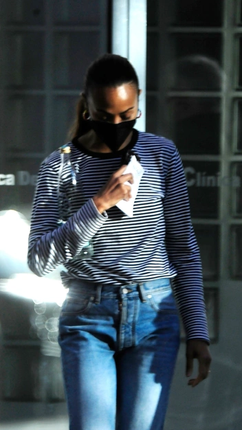 Зои Салдана каждым своим выходом подтверждает наличие безупречного вкуса в одежде. На этот раз она была замечена на испанском острове Майорка в стильном аутфите, который легко повторит каждая из вас. Звезда надела белый лонгслив в синюю полоску, напомнив нам самый классический морской принт. Его она стилизовала с прямыми джинсами на высокой талии с идеальной посадкой. Дополнила образ Зои Салдана лакированными балетками, которые снова вернулись в моду, и крупными золотыми серьгами-кольцами.