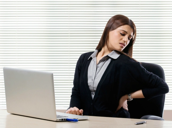Малоподвижная работа приводит к изменениям в межпозвонковых дисках и защемлению нервных окончаний, из-за чего сотрудники офисов жалуются на боли в спине, шее и руках, а также тазу и ногах.