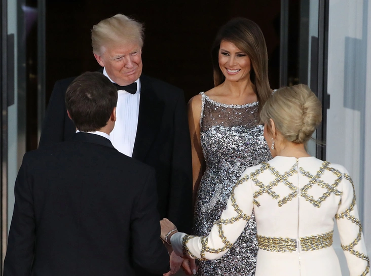 Неудивительно, что Мелании не хватает энтузиазма своих предшественниц в исполнении обязанностей супруги президента (не будем забывать, что американцам важно, чтобы их первая леди также была самостоятельной фигурой и занималась общественно полезными делами). И все же ее сложно уличить в полном безразличии к своему статусу. Несмотря на несколько демаршей, она в целом продолжает сопровождать Трампа в поездках, а в конце апреля она великолепно проявила себя в организации государственного банкета в честь Эммануэля и Брижит Макрон.