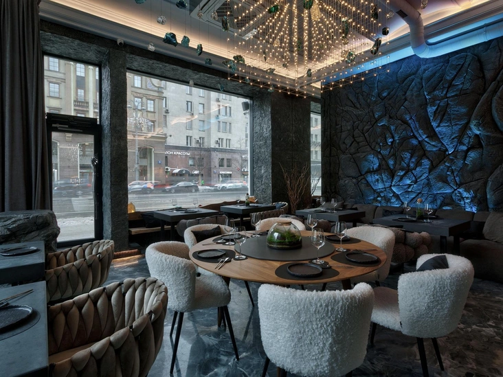 Мне очень хотелось на Тверской-Ямской сделать место, которое погрузит людей в какие-то свои внутренние ощущения, создать сказочную атмосферу с действительно классной подачей коктейлей, с очень вкусными блюдами, чтобы у людей был островок сказочного уединения в рамках шумной Москвы, в рамках загруженного центра. И да, он действительно не похож ни на что другое. У меня спрашивают, что было референсом, и, честно, я так и не могу дать ответ на этот вопрос, потому что он получился таким, каким он получился. Интересный факт: ни один дизайн-проект, который был у нас, в итоге не был сделан полностью, потому что какие-то финальные элементы мы уже доделывали, в реальном времени, в онлайн-режиме, потому что что-то мы отметали, что-то мы добавляли. Хотя я прекрасно понимаю, что это вообще никак не бьется с модой на тот самый минимализм. Но я обещаю, что какой-нибудь интересный проект как раз-таки в стиле минимализма у меня тоже появится. Когда будет на то настроение, будет на то ощущение.