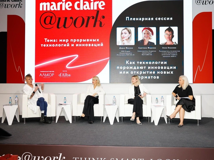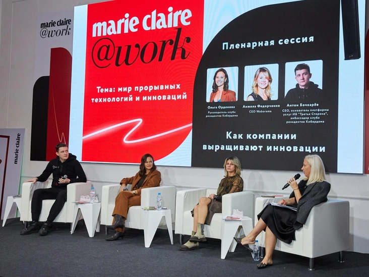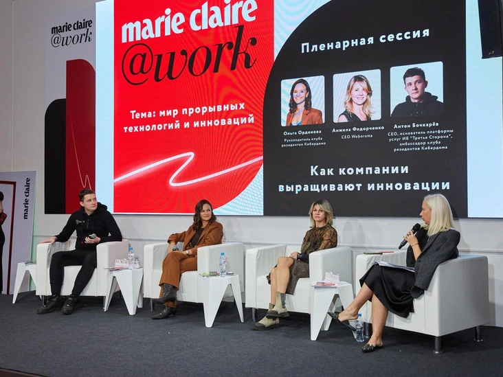 Московскую конференцию Marie Claire@work продолжила пленарная сессия «Как компании выращивают инновации». В ней приняли участие: