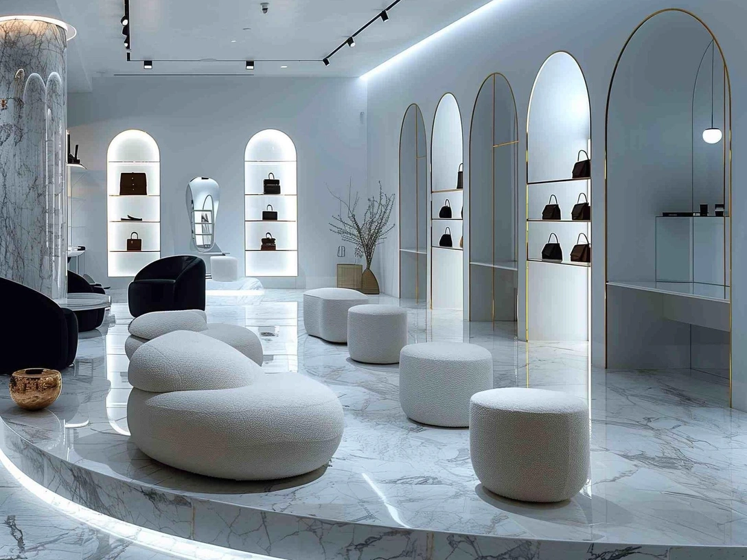Когда первоначальные расчеты сделаны, движемся к брейншторму и обсуждению идей. На этом этапе собираем дизайны в виде 3d моделей и проходим несколько раундов согласования, производим и примеряем тестовую витрину.