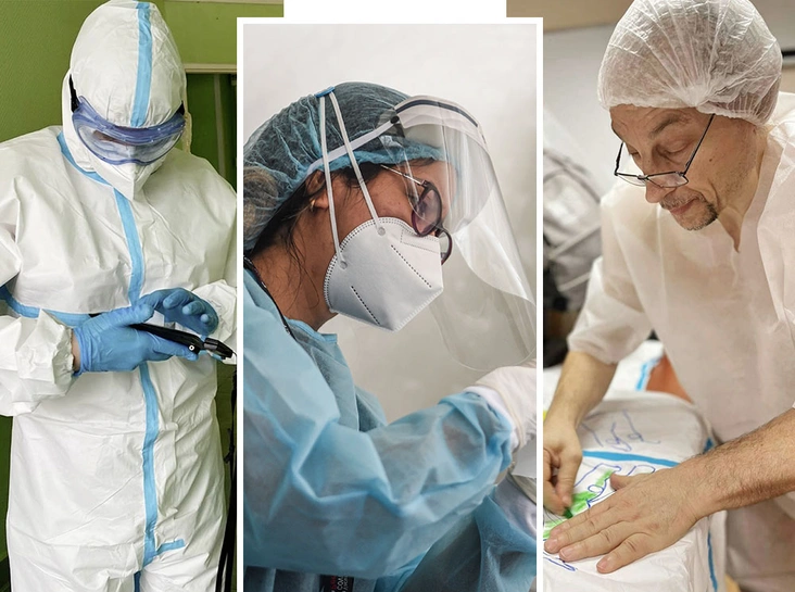Самые первые волонтеры особенно серьезно проверялись, чтобы свести риск заболеть к минимуму. Мы подтверждали, что не находимся в группе риска, что с нами не живут старики. Потом доводили до автоматизма умение правильно надевать защитный костюм, правильно снимать, правильно носить очки.