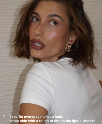 К тому же, «эстетика чистой девушки» оказалась очень удачной базой для будущих бьюти-трендов. Так, например, макияжи «латте», «клубничная девушка» и «только с мороза», которые популяризировала Хейли в соцсетях, позже нашли отражение в новинках Rhode — глянцевых тинтах для губ и кремовых румянах-стиках. Совпадение? Конечно же нет.