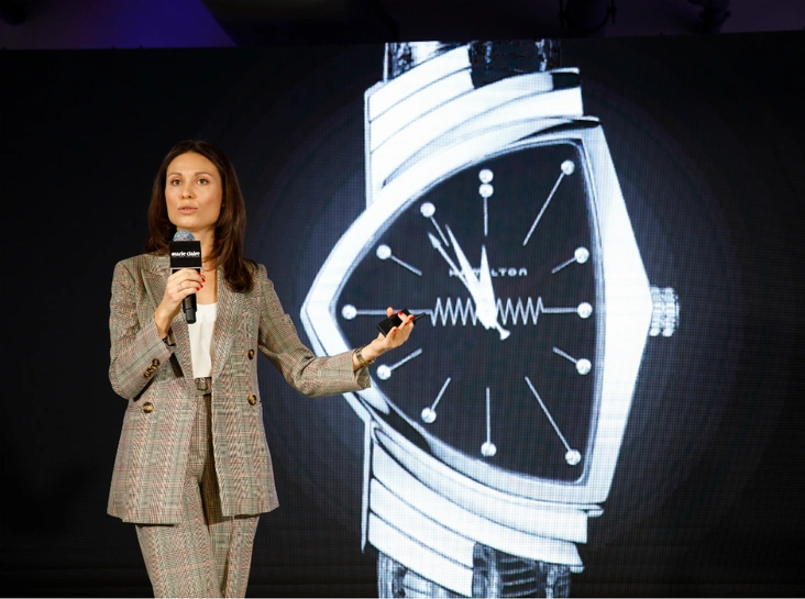 Партнером бизнес-конференции стал часовой бренд . Благодаря инновационному дизайну Hamilton является голливудским брендом номер один - различные модели часов этой фирмы принадлежат героям более 500 фильмов.