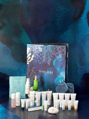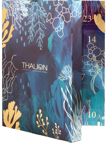 Дизайн адвент-календаря Thalion разрабатывала художник и ботаник Эмелин Ле Ру, страстно увлеченная морской темой. К Рожлеству она предлагает нам погрузиться в дивный подводный мир, щедро декорированный золотом, символизирующем те сокровища, а точнее, полезные для кожи компоненты, которые содержат водоросли — главная составляющая формул марки. В календарь вошли:
