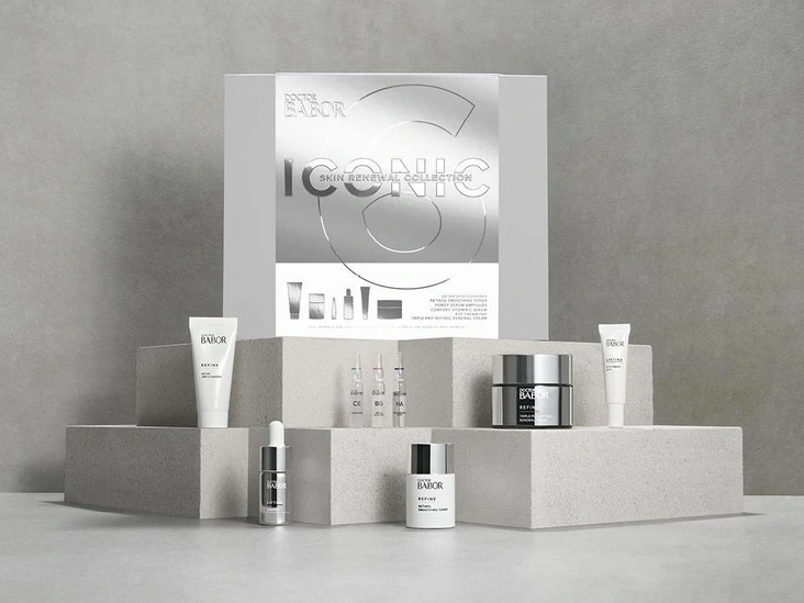 В рождественский набор Doctor Babor Iconic 6, вошли шесть бестселлеров марки, как в оригинальном объёме, так и в travel-формате. Ерем Pro-Retinol Renewal Cream, способствует полному обновлению кожи, благодаря комбинации тройного комплекса Про-Ретинол с аминокислотами, ниацинамидом и витамином F. Очищающий термо-бальзам Refine Cellular Detox Lipo Cleanser, создаёт на коже приятное ощущение тепла, мягко избавляет от загрязнений и макияжа и выводит токсины с помощью детокс-комплекса из биофлавоноидов из лимона, экстракта брокколи и алоэ вера. Разглаживающий тоник с ретинолом Refine Cellular Retinol Smoothing Toner, стимулирует процессы восстановления и стирает мелкие морщинки. Сыворотка с витамином С Lifting Comfort Vitamin C Serum, повышает упругость и выравнивает тон. Набор из трех ампул Power Serum Ampoules Set содержит одно средство для сияния кожи, одно для ее регенерации и одно, выравнивающее цвет лица. А дневной крем для век Lifting Cellular Eye Cream Day Устраняет мелкие морщинки, темные круги и следы усталости.