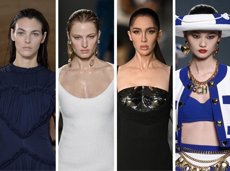 Мы уже полюбили полупрозрачные блески, теперь пришло время помад с сияющим или сатиновым финишем. За референс берите показы Moschino и Miu Miu, на которых модели вышли на подиум с сияющей красной помадой. Добиться такого эффекта можно и с вашей любимой матовой помады, просто нанесите поверх нее слой прозрачного блеска для губ.