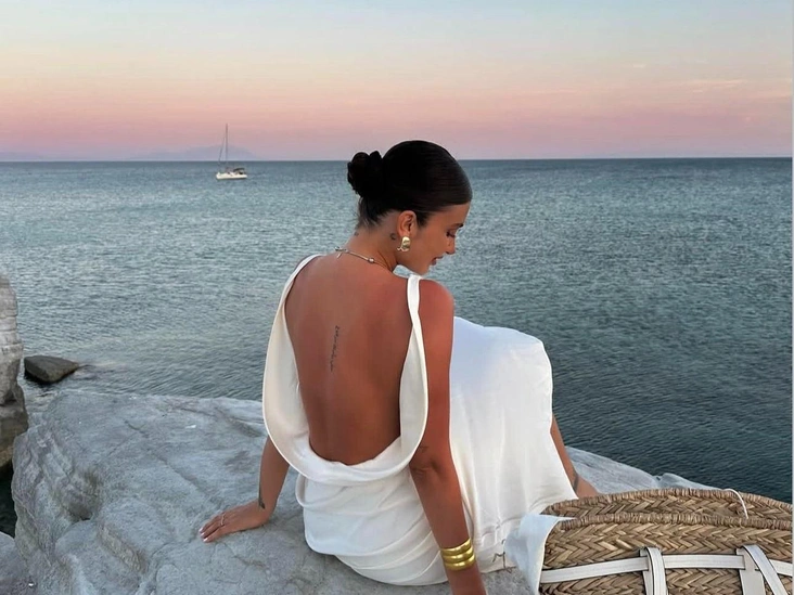 С одеждой: открытые плечи, сатиновые платья, кроп-топы и шорты — масло не пачкает, если дать ему впитаться. Белое и черное — идеально для контраста.
