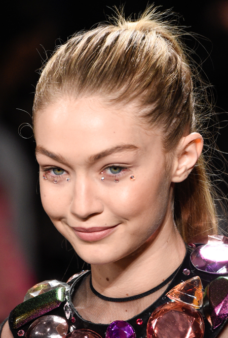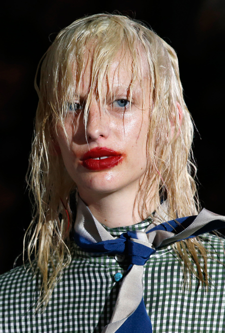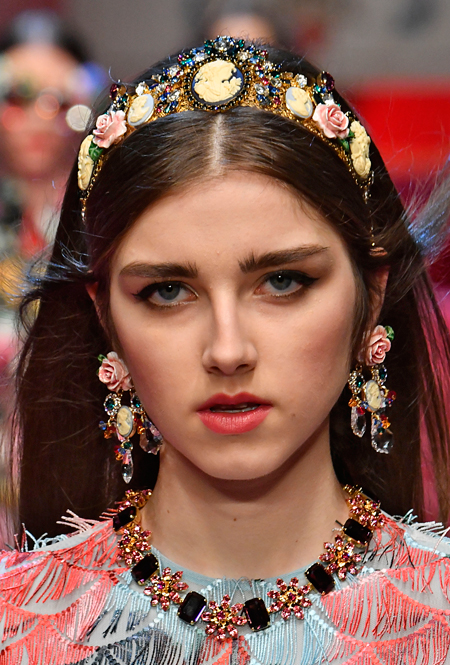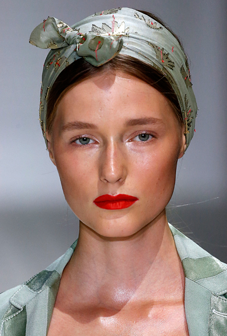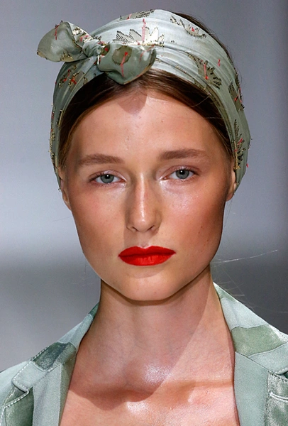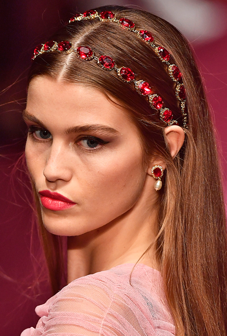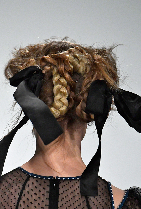 Тиара или хотя бы ободок (Dolce&Gabbana), повязки и банданы (Gucci), заколки и невидимки (Versace) – мы будем рады наконец-то снять шапки, чтобы выбрать свое любимое украшение. Заколки будут вычурными и утрированными, словно мы вернулись в старшие школьные классы. Не верите? Взгляните на бархатные резиночки, украшающие волосы девушек Mansur Gavriel.