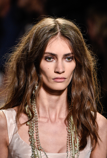 Очень много стилистов пели оду натуральности: волосы моделей выглядели так, словно их высушили не просто без фена – без расчески. Удачнее всего спокойные волны смотрятся на полудлинных волосах. Тем, у кого они вьются от природы будет легче, остальным придется приложить немного усилий (совсем чуть-чуть).