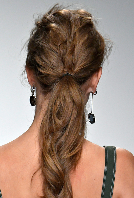 Здесь две крайности: конский хвост должен быть небрежным, как будто утром вы забыли о расческе, или вычурным и прилизанным, словно на его сооружение был потрачен как минимум час (и, скорее всего, так и будет). А вот располагать его можно где угодно и как удобно: как выско на макушке, так и на затылке, и даже сбоку.