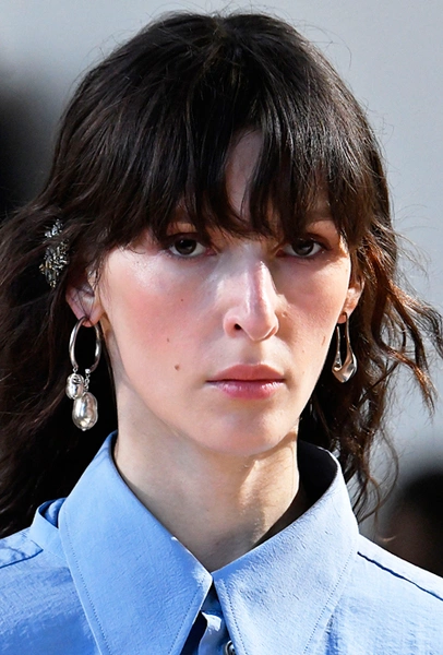 Вернулись (хотя разве они куда-то уходили?). Balenciaga, Lemaire и Lutz Huella говорят нам, что челки в будущем сезоне будут повсюду. Прямые и курчавые, ровные и ассиметричные, длинные и короткие – какой бы вариант вы не выбрали, он станет отличным способом освежить образ. Довольно смелый ─ у Edrem, весенне-летняя коллекция которого была реверансом в сторону стиля Елизаветы II. И если вы хотите выглядеть, как только что вставшая с постели королева, челка должна выглядеть словно подкрученная на бигуди прядка.