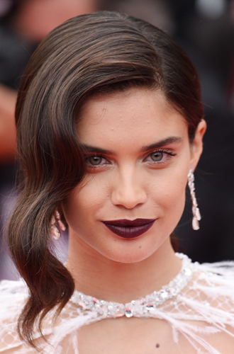 Прекрасная иллюстрация того, как макияж может менять внешность: это тоже Сара Сампайо ─ на премьере «Хан Соло: Звездные войны. Истории». Один акцент, но какой ─ матовая помада оттенка марсала. Брови при необходимости можно подчеркнуть тенями, ресницы тщательно прокрасить тушью, а румяна и всевозможные бронзеры оставить в покое. Прекрасный вариант для выхода «по поводу» прохладным летним вечером.