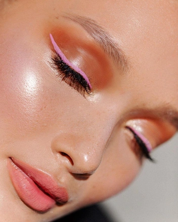 Еще один оттенок, мимо которого невозможно пройти весной и летом. Розовым можно дополнить классическую черную или коричневую стрелку, а можно — сделать одну яркую неоновую стрелку. Главное — не забудьте подчеркнуть межресничку, чтобы подводка смотрелась более гармоничной.