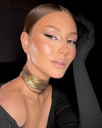 Макияж с двойными стрелками повторить легче, чем кажется. Сначала нарисуйте стрелку как обычно по верхнему веку, а затем прорисуйте межресничку нижнего, также выведя ее к внешнему уголку глаза. Пространство между ними можно оставить голым или заполнить акцентными тенями (читайте также: 7 главных трендов макияжа весны и лета 2023, которые нужно попробовать).