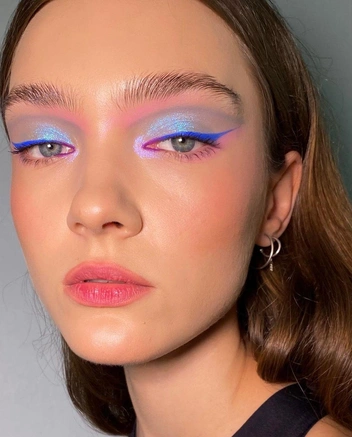 После того как синий-электрик захватил тренды маникюра, оттенок плавно перебрался и в макияж. Синяя стрелка подойдет к любому цвету глаз и одинаково хорошо смотрится в соло и в сочетании с шиммерными тенями.