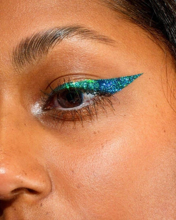 Блестящие стрелки с глиттером и стразами были замечены не на одной Неделе моды. Такой макияж всегда смотрится ярко и необычно, а повторить его просто, так как кроме блестящей подводки вам ничего не понадобится (читайте также: 6 необычных способов нанесения подводки).