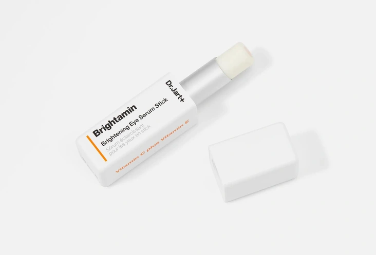 Brightening от DR.JART+ — двухкомпонентная сыворотка-стик для зоны вокруг глаз с высоким содержанием витамина С (20%) и антиоксидантами на основе витамина Е. Формат стик удобен тем, что его можно носить с собой и обновлять в течение дня, не касаясь зоны под глазами пальцами. Текстура тает на коже, превращаясь в сыворотку, которая быстро распределяется и впитывается.